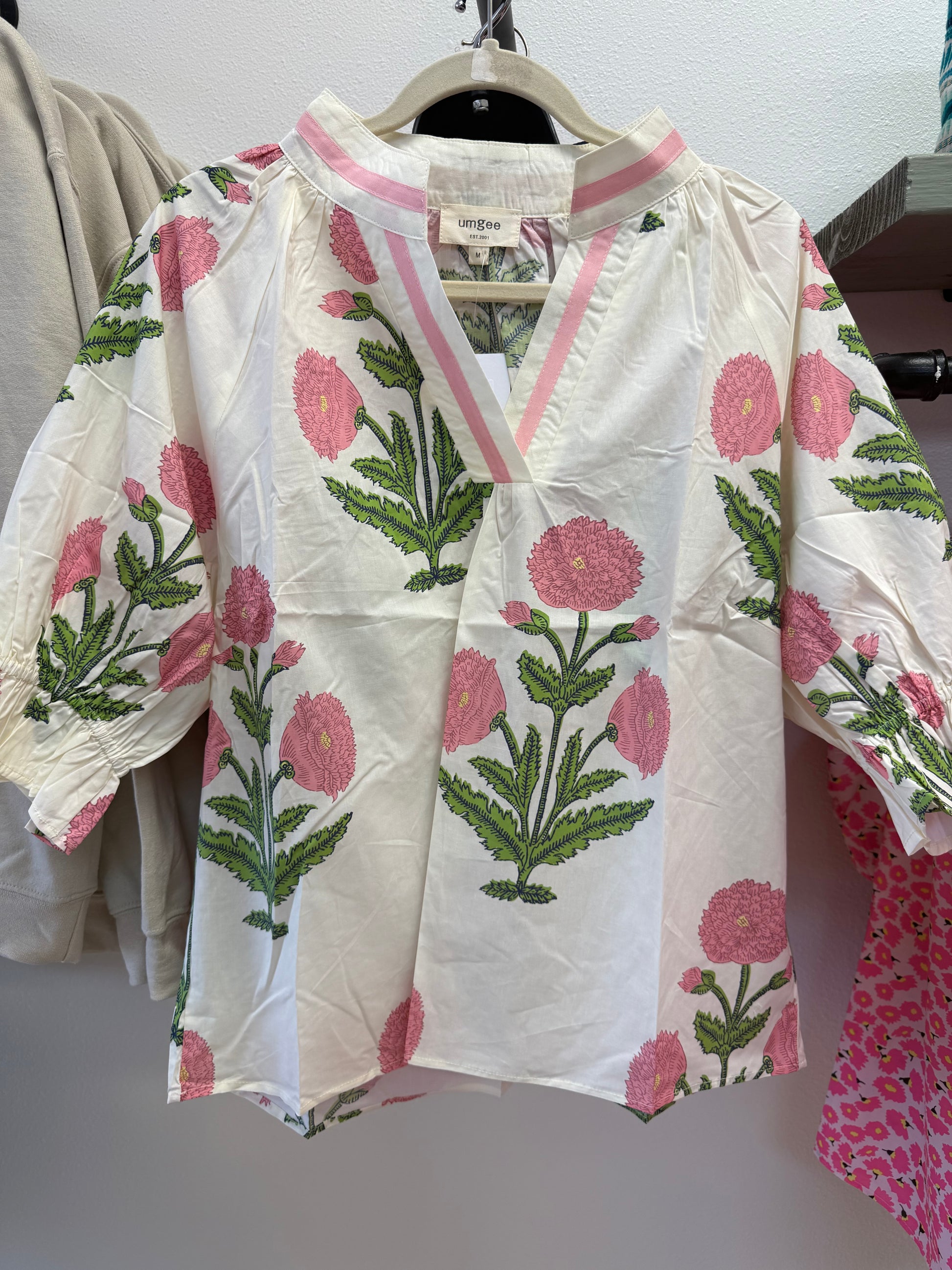 Cream & Pink Floral 3/4 Sleeve Blouse